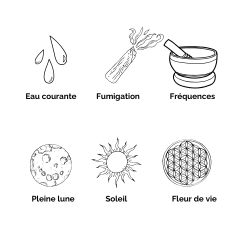 Tiens une pierre de lune blanche dans tes mains pendant que tu te relies à ta respiration. Visualise une lumière blanche et nacrée qui apaise tes émotions et t’aide à te remettre à l’écoute de ton cycle intérieur. Tu peux aussi la placer sur le bas-ventre ou le chakra sacré pour soutenir la cyclicité et le féminin sacré.